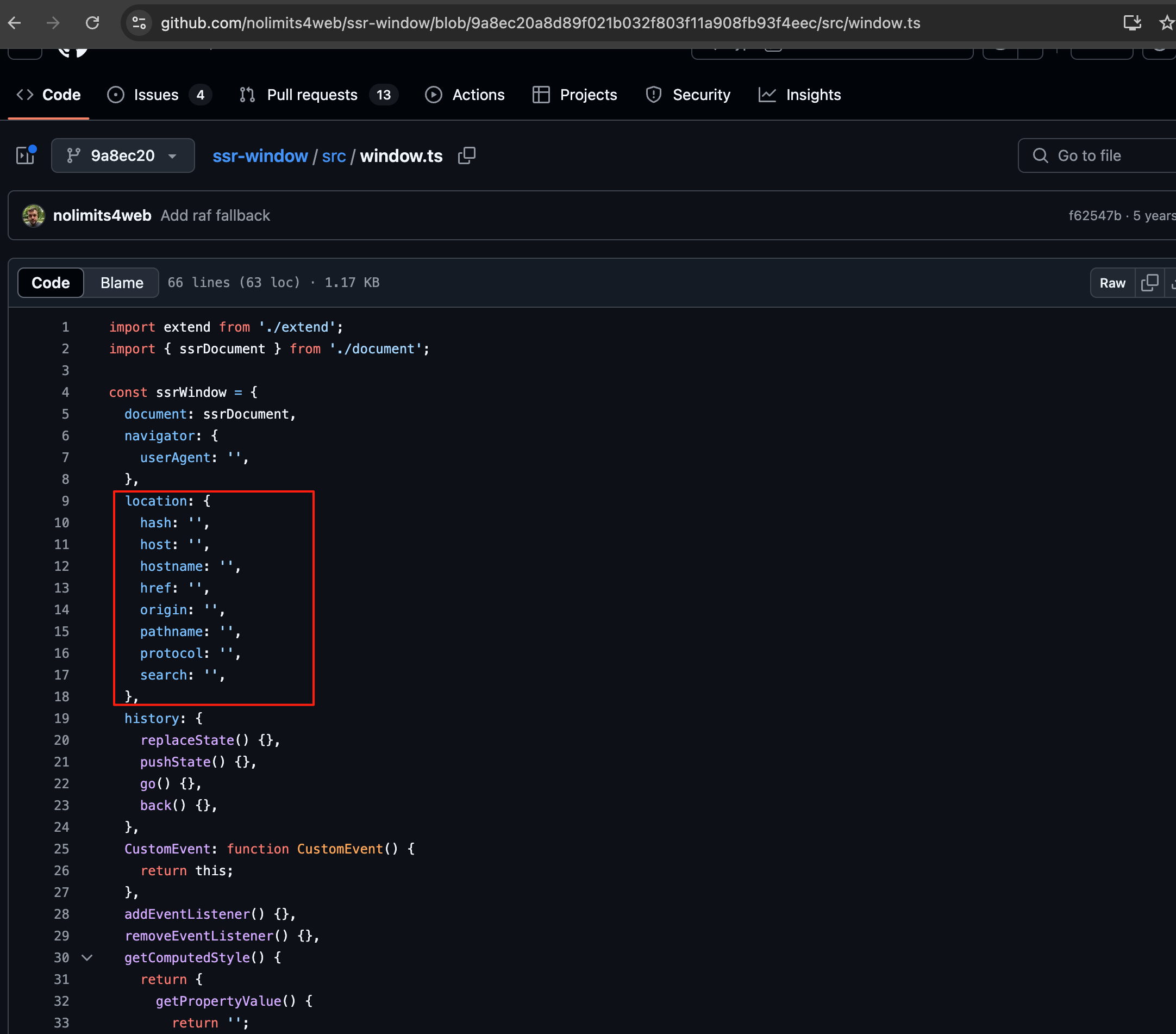 location对象模拟在 ssr-window 的源码中,我们找到这个location对象定义: